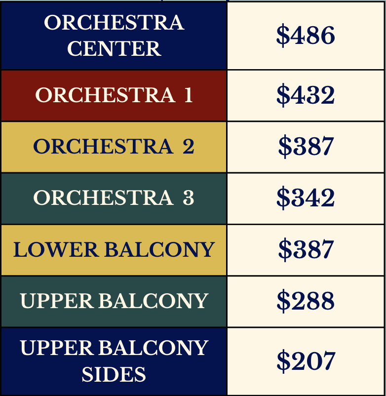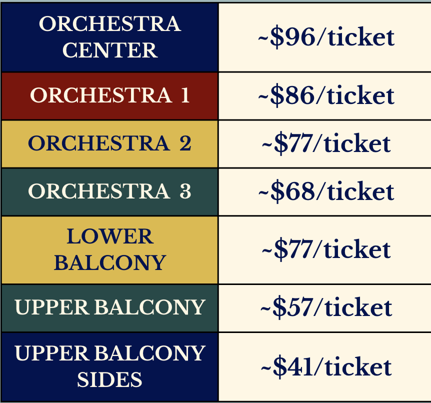 Any performances/section/seat quantity. Approximate price per ticket with discount: